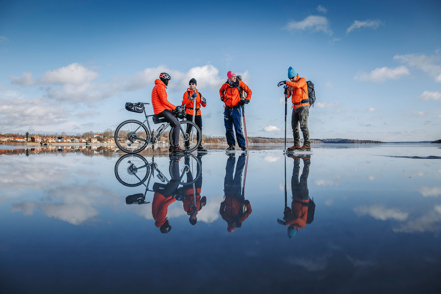 „Das wird ein Traumtag zum Eiswandern“, lacht der sympathische Mittvierziger in der orangefarbenen Outdoor-Kleidung, die hier auf dem Parkplatz alle tragen. Ich schaue skeptisch in den wolkenverhangenen Himmel. Es ist 7 Uhr morgens, und es hat die ganze Nacht geregnet. Unser Plan für den Tag, mit unseren SILEX Gravelbikes eine Runde um Mariefred zu drehen, ist „im Schlamm begraben“. Der Gedanke, auf dem See Schlittschuh zu laufen, erscheint mir absurd. Der Schwede lacht: „Im Frühling ist hier alles möglich, und der Regen der letzten Nacht hat das Eis praktisch erneuert. Wie eine Eismaschine in einem Eishockeystadion gefriert der Regen, sobald er auf das Eis trifft, und macht es wieder neu und glatt. Die Sonne wird heute den ganzen Tag scheinen. Wir sollten also alle aufs Eis gehen.“ Seine offene Art und gute Laune sind ansteckend, ebenso wie die ausgelassene Stimmung der ganzen Gruppe. Es ist ein erfrischendes Potpourri aus Jung und Alt, Sport und Geselligkeit. Schlittschuhlaufen ist in Schweden ein Nationalsport. An schönen Wochenenden kommen Hunderte von Schlittschuhläufern aus Vereinen in ganz Stockholm mit dem Bus nach Mariefred. Inspiriert von der Sonne beginne ich von unserem ursprünglichen Plan zu erzählen, mit dem Gravelbike um Mariefred zu fahren, als mir eine verrückte Idee kommt.