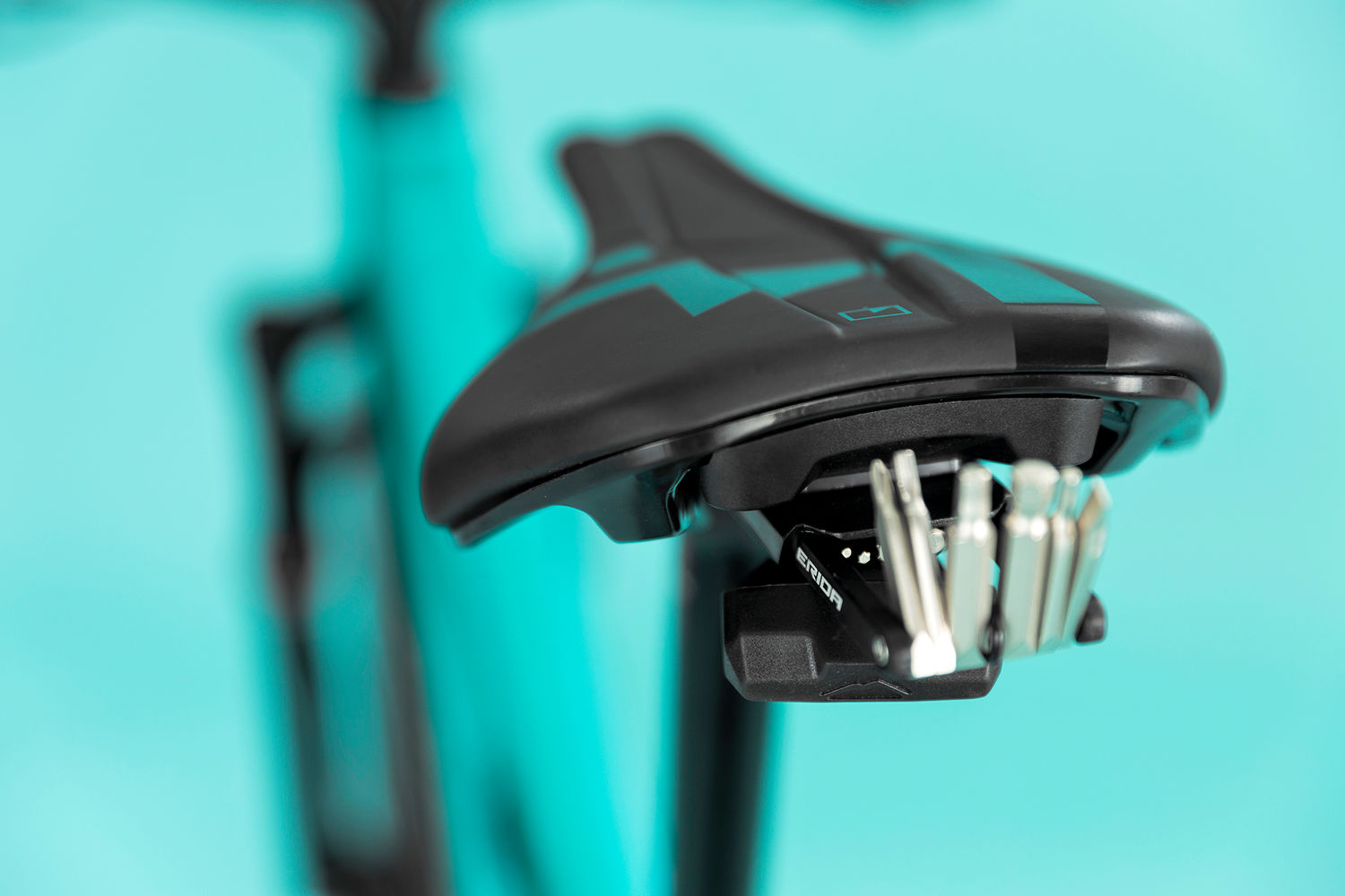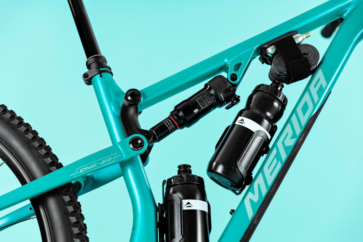 Für zusätzlichen Stauraum und um die wichtigsten Werkzeuge griffbereit zu haben, haben wir unser MERIDA V-MOUNT Multitool unter dem Sattel und unseren 4/6 mm Inbusschlüssel am abnehmbaren Hebel der hinteren Steckachse angebracht, so dass Sie sofort einsatzbereit sind, ohne einen Rucksack mitnehmen zu müssen.
