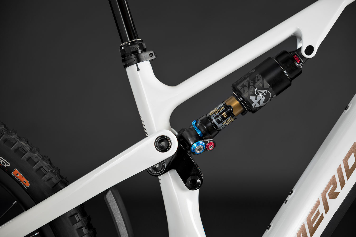 Die E-MTBs sind mit versetzten Dämpfern ausgestattet, um Platz für den Zusatzakkus oder eine Wasserflasche zu schaffen und viel Freiheit für die Knie zu generieren. Außerdem verfügen sie über eine leicht überarbeitete, E-MTB-spezifische Kinematik und einen FLIP CHIP zur Anpassung der Laufradgröße. Der Federweg wurde sowohl an der Front als auch am Heck vergrößert: auf 170 mm vorne und 174 mm hinten (27,5"-Hinterrad). Dadurch wird das eONE-SIXTY noch geländegängiger.