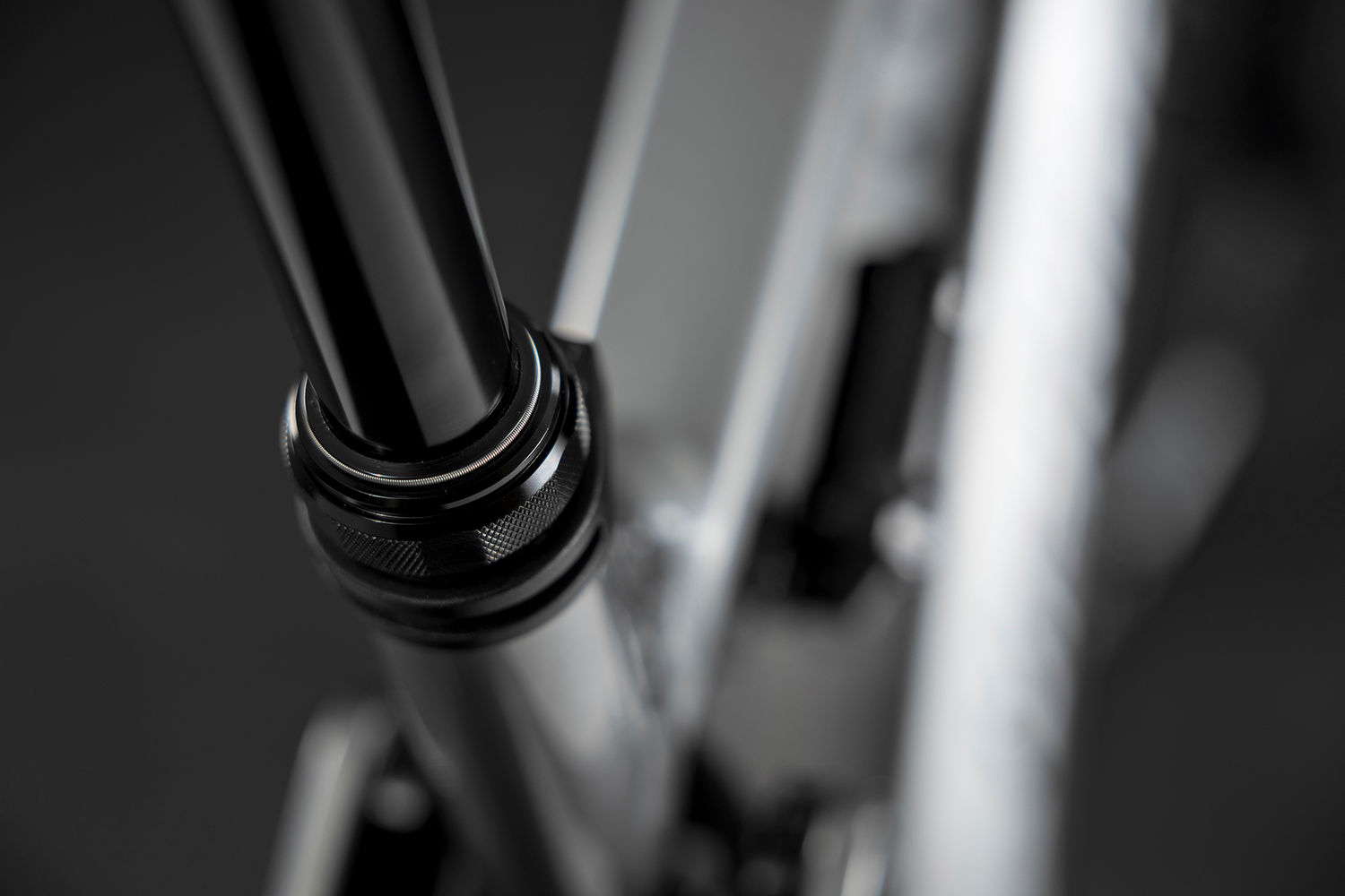 Die Fahrräder werden standardmäßig mit Gabeln mit konischem 1,125-1,5"-Gabelschaft geliefert, aber es ist möglich, Gabeln mit dem neuen 1,8"-Standard zu verwenden, indem man die untere Rahmenschale und die Gabelkrone austauscht. Diese und alle anderen Komponenten stammen von ACROS. Das gewährleistet eine breite Austauschbarkeit der Komponenten und eine erstklassige Verfügbarkeit von Ersatzteilen.
