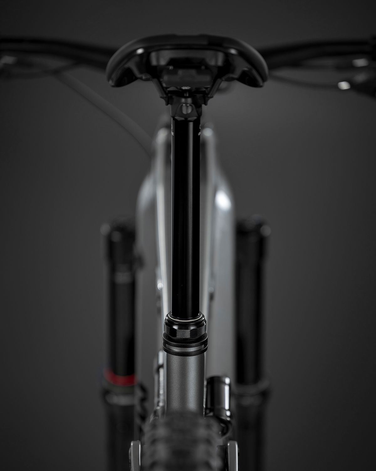 Ein wichtiger Bestandteil des AGILOMETER-Größensystems, der es dem Fahrer ermöglicht, seine Rahmengröße nach den bevorzugten Fahreigenschaften und der Fahrposition und nicht nur nach der Sitzrohrlänge zu wählen. Der Hub ist über einen einfach zu bedienende Manschette an der Sattelstütze von 30 mm bis 230 mm einstellbar. Der Durchmesser von 34,9 mm verringert die Belastung der Sattelstützen-Innenseite und des Rahmens, was die Haltbarkeit weiter erhöht.