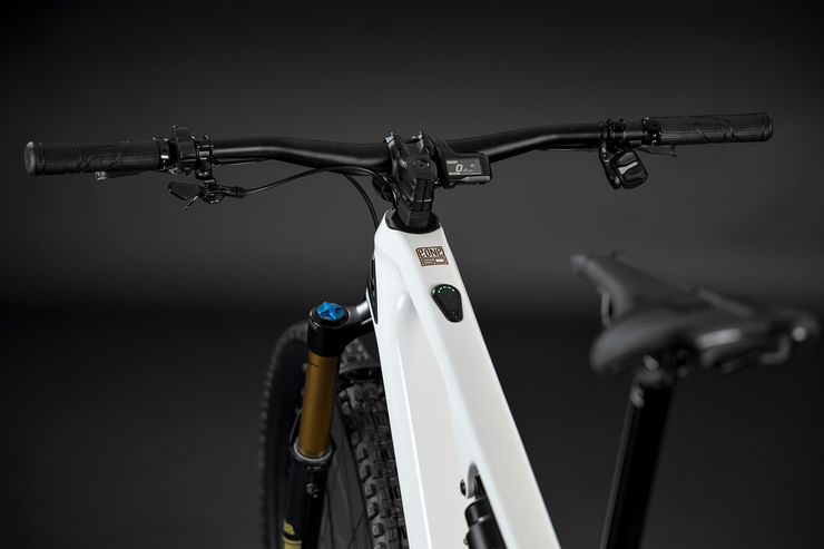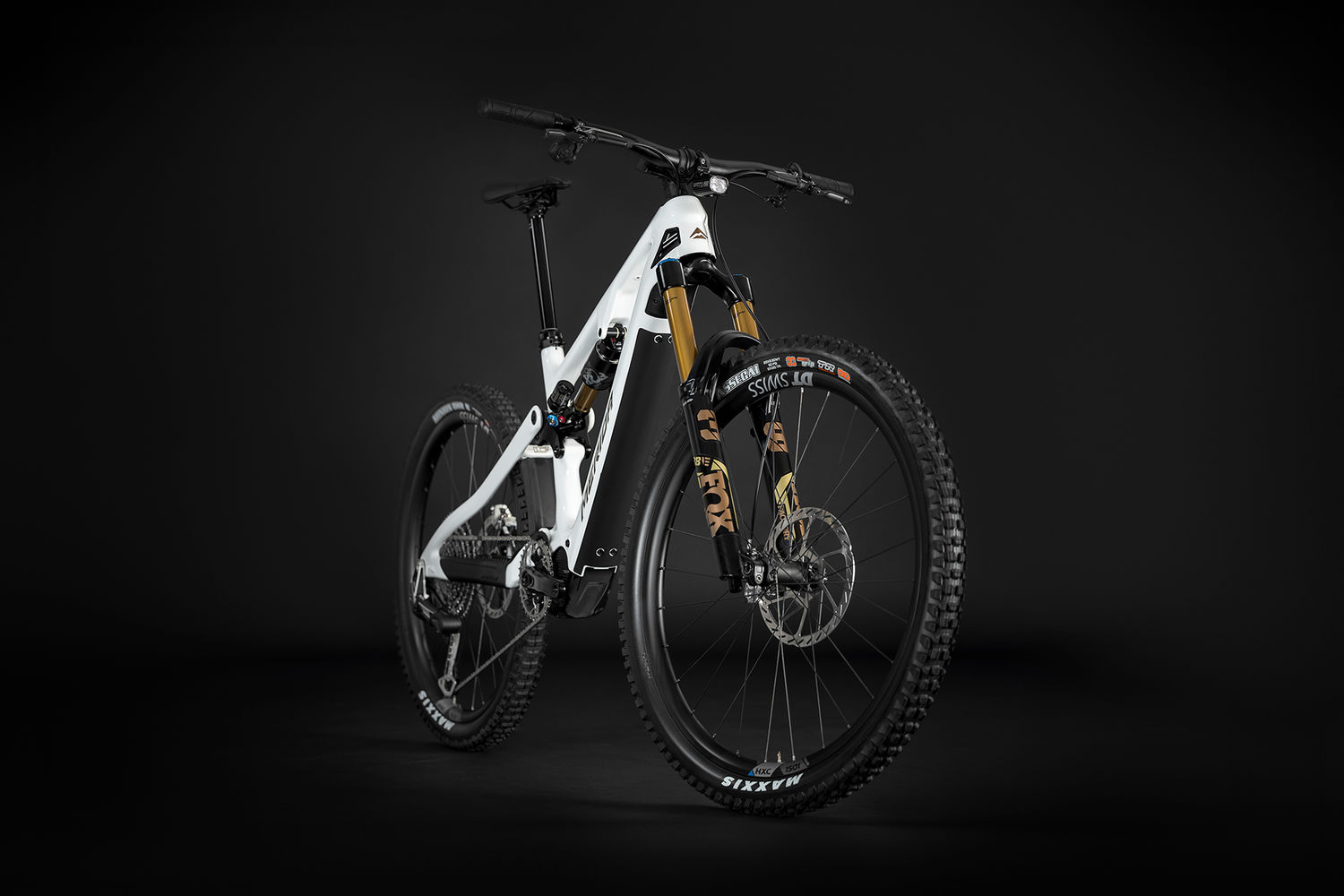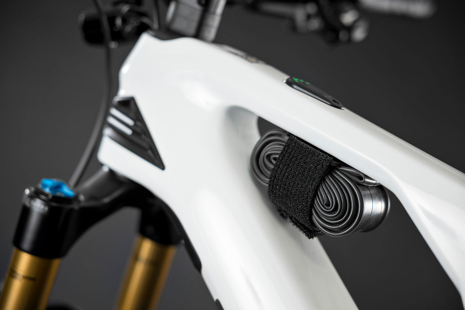 Das eONE-SIXTY CF kommt mit mehr Federweg − 170 mm an der Vorder- und 174 mm an der Hinterachse − und einem Mullet-Setup in allen Rahmengrößen, da der performance-orientierte Carbon-Rahmen sehr wahrscheinlich im extremeren Gelände eingesetzt wird, wo mehr Manövrierfähigkeit und Agilität von entscheidender Bedeutung sind. Das Bike kann aber auch auf ein reines 29er-Setup umgerüstet werden, wodurch der Federweg am Hinterrad auf 160 mm reduziert wird. Der interne, nicht herausnehmbare Akku verfügt über eine Kapazität von 600 Wh, die durch den 360-Wh-Zusatzakku erhöht werden kann. Im Vergleich zu seinem Vorgänger ist das eine Steigerung der Akkukapazität von mehr als 50 %.
