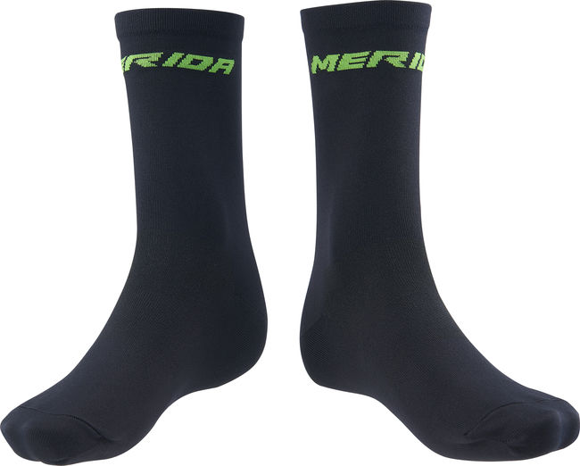 Classic black or white riding socks for road and off-road use. The long 24 - 28 cm (depending on size) socks are super comfortable, lightweight and breathable. The black socks are available in four different logo colours, while the white version is available in classic white with black MERIDA writing.