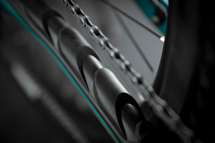 Es war uns besonders wichtig, dass unser neues eONE-FORTY so leise wie möglich ist und auch nach längerem Gebrauch so bleibt. Neben der ENERGY GUARD TWIST Akku-Abdeckung, die Geräusche reduziert und den Energieträger perfekt schützt, haben wir viel Aufwand in unseren neuen Kettenstrebenschutz gesteckt. Der vom Design her an einen Drachen erinnernde Protektor ist um einiges größer und bedeckt fast die gesamte Kettenstrebe, was zur Geräuschminimierung beiträgt.