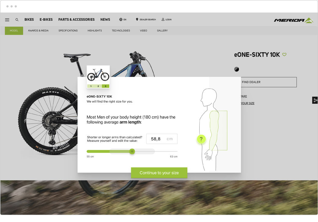 Das SMARTFIT-Tool berechnet die ideale MERIDA-Rahmengröße für Sie