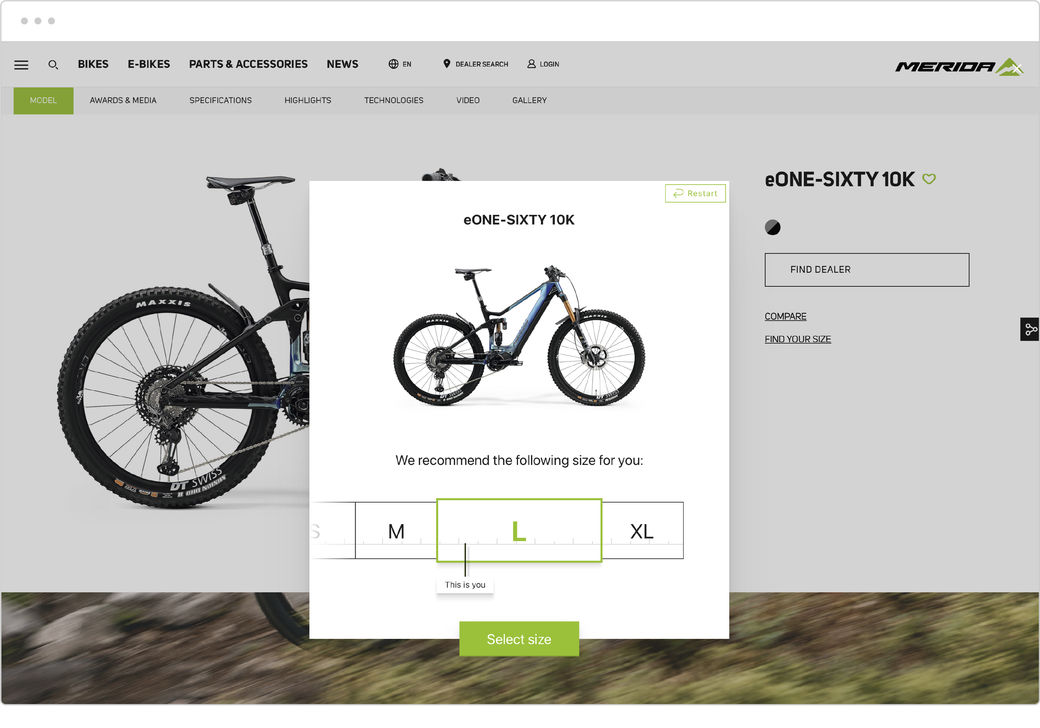 Um Ihnen eine zuverlässigere und genauere Vorstellung davon zu geben, welche Rahmengröße Sie benötigen, haben wir das SMARTFIT-Tool zur Größenbestimmung in unsere Website integriert.