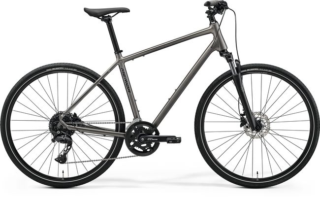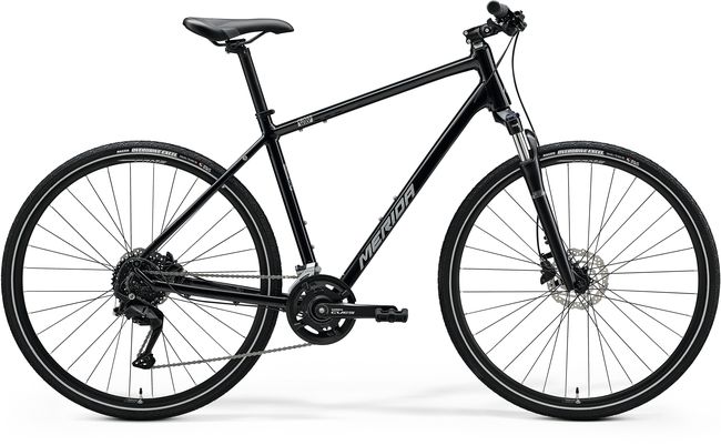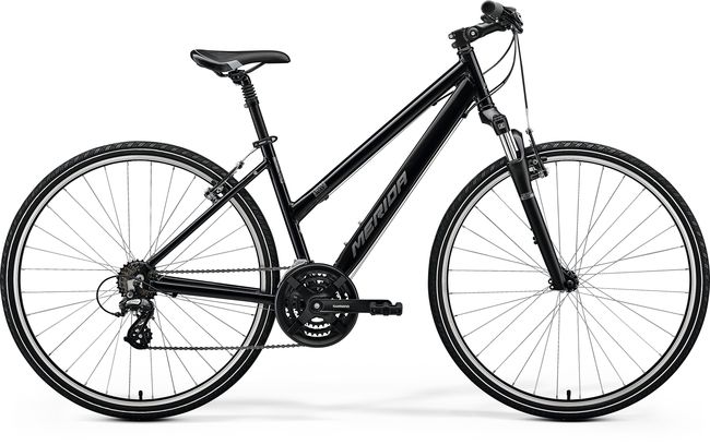 The CROSSWAY family has been the MERIDA range's backbone since its introduction. They are used worldwide and are proven as a reliable, versatile and fun-packed way of getting around. Designed to provide a comfortable place to take in the surroundings thanks to an upright riding position and comfort focused equipment such as suspension fork and adjustable stems on selective models, they offer the perfect blend of comfort, enjoyment and all-round functionality. They are suitable for fitness training, commuting and leisurely rides through forests and on trails. Made from high-quality, lightweight aluminium with the ability to mount mudguards, racks and kickstands, the CROSSWAY range is the perfect choice for everyday riding. The fitted 700c wheels cover ground quickly, while the extra volume of the 40 mm wide tyres offers puncture protection, grip and comfort. All CROSSWAY models are available as a low step-through frame, making mounting and dismounting straightforward.