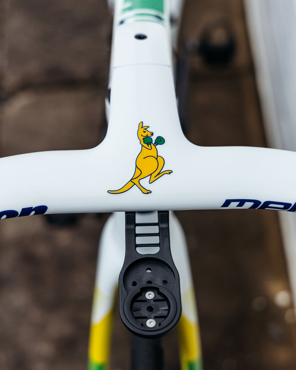 To honour another great rider and his huge commitment to the team, Heinrich Haussler also received his own 'one-off' REACTO, decorated in the national colours of Australia and wearing his nickname 'Heino'. With the 2022 World Road Championships taking place in Wollongong, in his home country Australia, Heinrich Haussler was able to line up at this start line with this beautiful creation. As one of the real all-rounders of the team, Heinrich is known for his tireless efforts to support his teammates and his ability to bring the team together, regardless of how challenging the task ahead might be. As a real team player and role model for the younger members of the team, he is a deserving recipient of such a special bike.