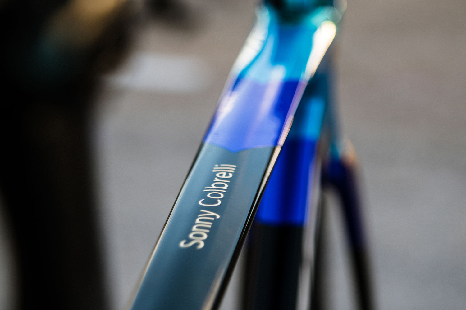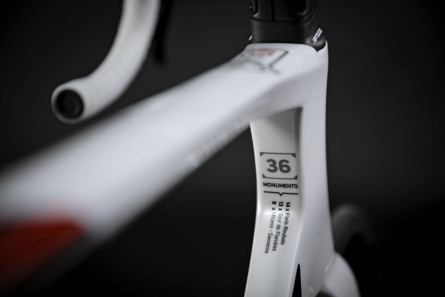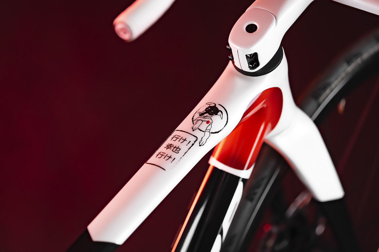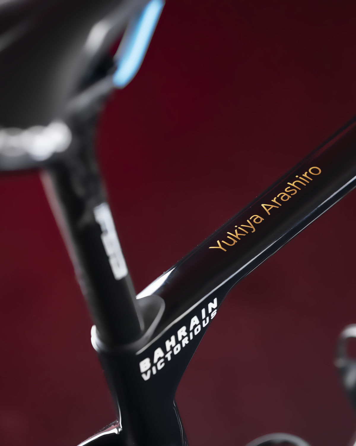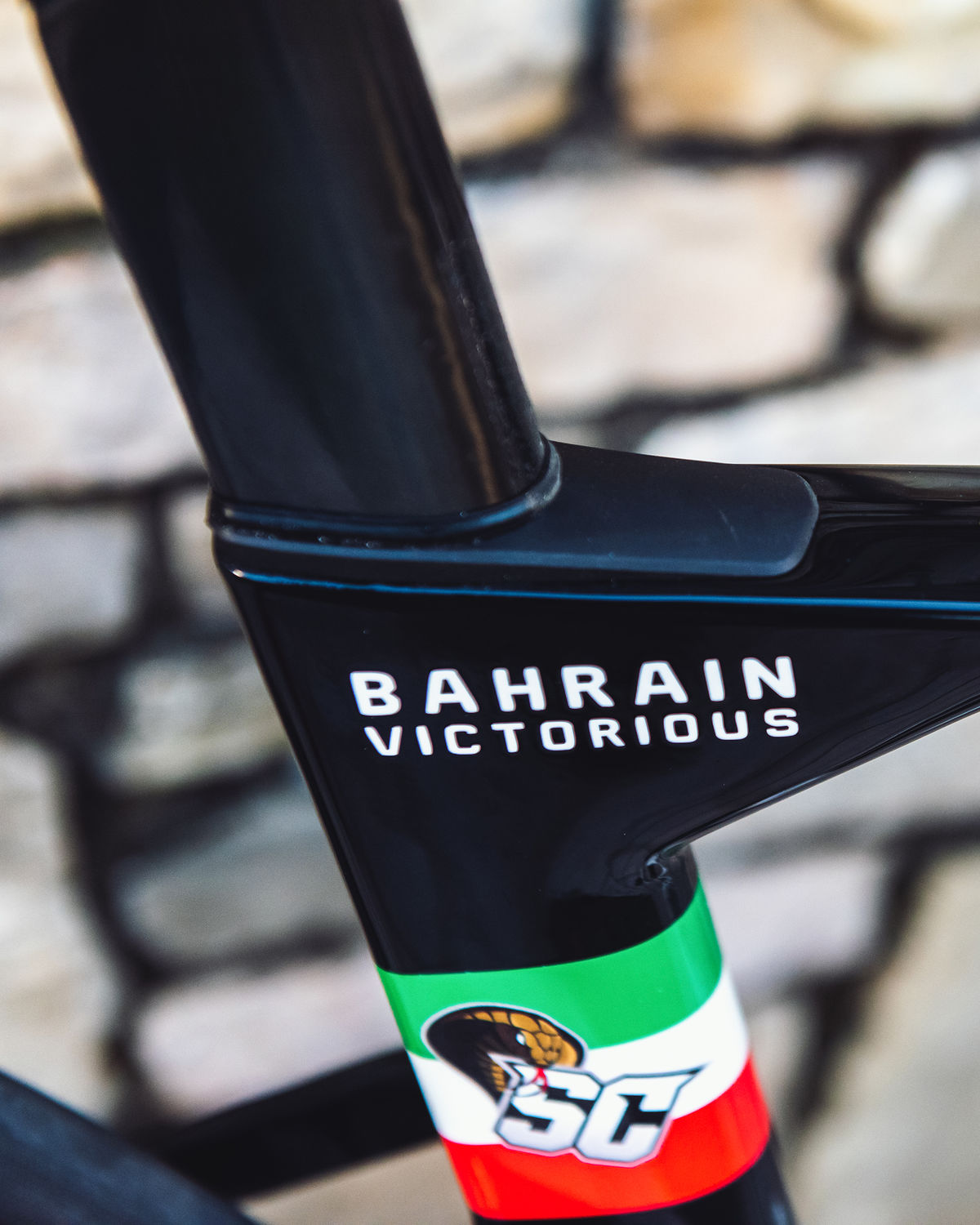 Sometimes, it is not about focusing on one incredible win but honouring an outstanding contribution and the tireless efforts of a rider to put his teammates into the perfect position for the sprint. This is the reason that made us create a very special bike for a very special rider. After more than 20 years in the professional peloton, the most successful 'Edelhelfer' or 'Top end domestique' Marcel Sieberg brought his racing career to an end, finishing his racing years in the colours of Team Bahrain Victorious. As an appreciation of his impressive career with unrivalled effort and undisputed commitment, creating this special bike was the least we could do. Key areas of the bike, such as the underside of the downtube, the front part of the top tube and the area behind the headtube, carry vital moments from Marcel’s career as well as his 'Edelhelfer' inscription, serving as a lasting reminder of what he achieved for Team Bahrain Victorious and previous teams he has raced for.