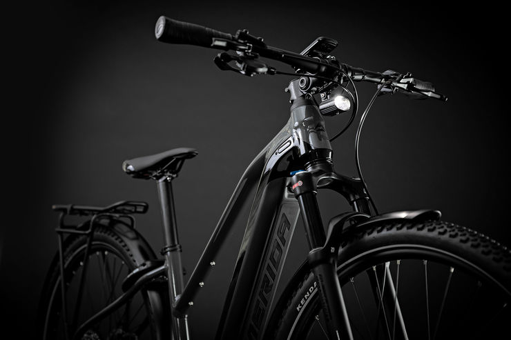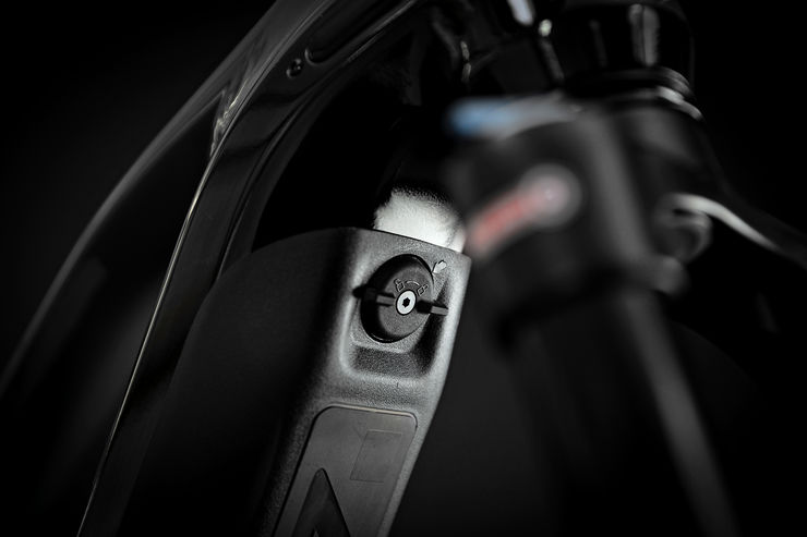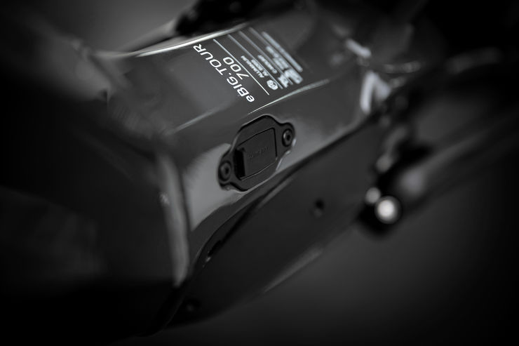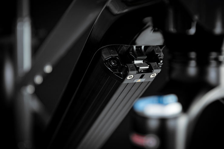 Through the extensive use of hydroforming on the down tube and the precise laser cutting of the tube opening for the battery, as well as the perfectly matching two-component plastic cover, we were able to integrate the battery seamlessly into the lower part of the down tube. This is consistent throughout the various frame sizes. Charging is easily possible through the nicely integrated charging port at the motor bracket. Also, the battery is perfectly integrated into the down tube, yet it is possible to remove it for charging or when in transport. A further advantage of the battery being integrated into the down tube is the perfect protection from an impact which can occur when the bike falls over or is involved in a crash.