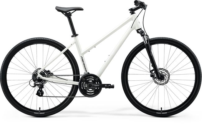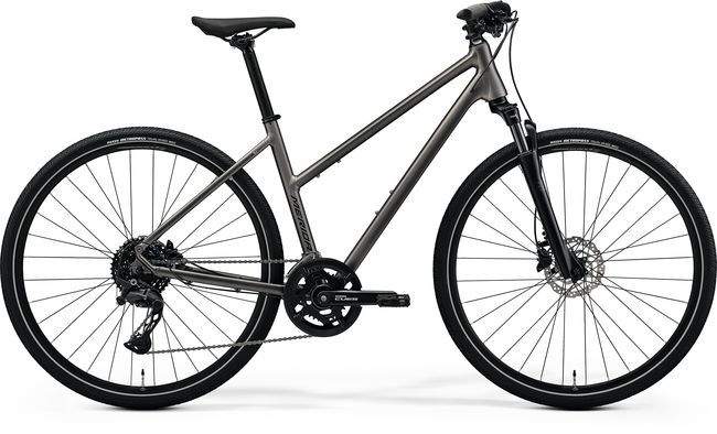 The CROSSWAY family has been the MERIDA range's backbone since its introduction. They are used worldwide and are proven as a reliable, versatile and fun-packed way of getting around. Designed to provide a comfortable place to take in the surroundings thanks to an upright riding position and comfort focused equipment such as suspension fork and adjustable stems on selective models, they offer the perfect blend of comfort, enjoyment and all-round functionality. They are suitable for fitness training, commuting and leisurely rides through forests and on trails. Made from high-quality, lightweight aluminium with the ability to mount mudguards, racks and kickstands, the CROSSWAY range is the perfect choice for everyday riding. The fitted 700c wheels cover ground quickly, while the extra volume of the 40 mm wide tyres offers puncture protection, grip and comfort. All CROSSWAY models are available as a low step-through frame, making mounting and dismounting straightforward.