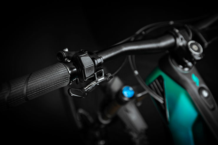 Very compact and well-defined assist level shifter that helps to keep the cockpit clean and less clattered, while it also enables easy access to the Shimano paddle style dropper seat post leaver, that fits neatly to the brake lever bracket and is positioned underneath the handlebars.