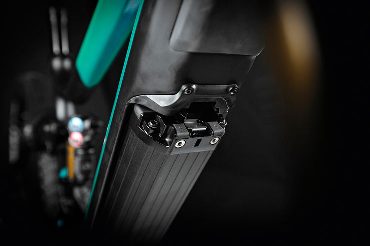 Powerful internal lithium-ion battery that offers 504 Wh, charges up from 0-100% in 5 hours (when EC-E6000 charger is used) and retains at least 60% of its original battery capacity after 1,000 charging cycles. The aluminium cased battery is extremely compact allowing us to seamlessly integrate it into the downtube for ample space for the rear shock, added water bottle fixing points and plenty of top tube clearance. It has a waterproof design and is impact and vibration resistant.