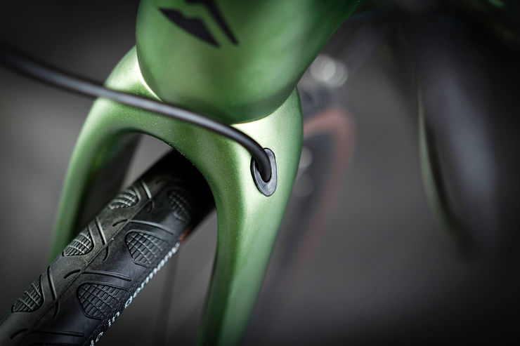 All MISSION ROAD models feature a full carbon tapered fork with a 12mm bolt through axle. The full carbon construction offers added comfort and the bolt through improves torsional stiffness of the front wheel. The tapered carbon steerer increases vertical stiffness, providing very precise steering and enhanced confidence in corners.