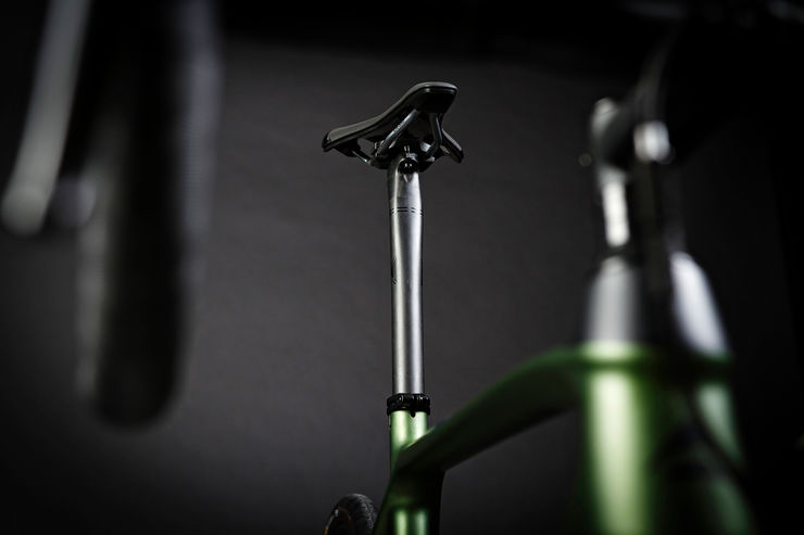Wide 32mm road tyres and an elevated cockpit offer extra comfort on rougher roads and a more upright riding position (through added spacers).