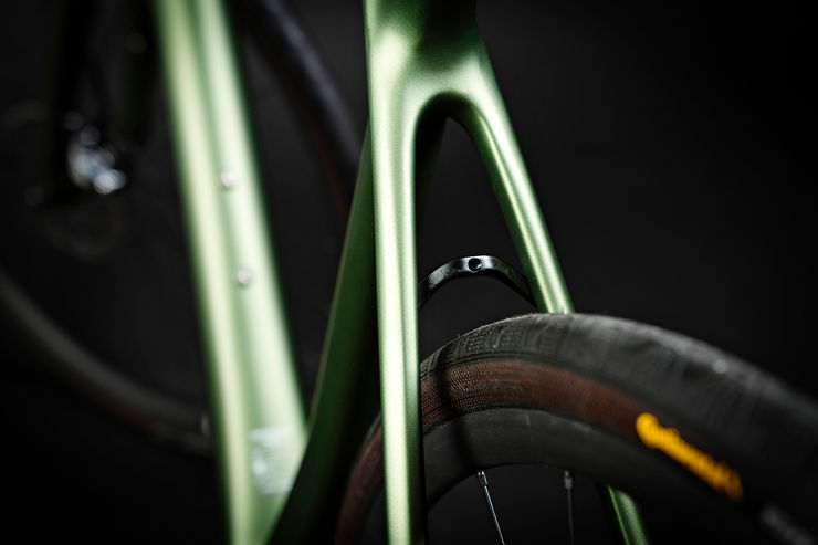 The MISSION ROAD offers tyre clearance of up to 42mm or 35mm if mudguards are fitted. The carbon models feature a removable seat stay bridge, which offers an extra fixing point if rear mud guards are fitted, but can be removed for extra tyre clearance and a cleaner look.