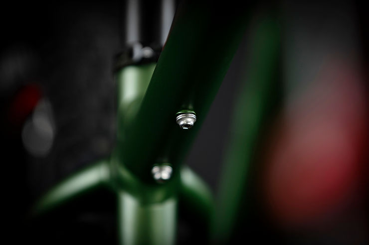 Cables are routed through the frame, entering and exiting through smooth sockets. The bike looks neat, whilst the cables are protected from moisture and dirt.