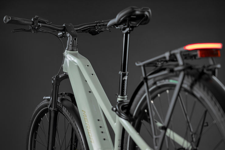 La nueva eFLOAT CITY presenta uno de los diseños de cuadro de bajo paso más bajos de la industria, lo que facilita subir y bajar de la bicicleta, incluso en situaciones de tráfico intenso en el centro de la ciudad. El cuadro cuenta con nuestro diseño ENERGY CRADLE, que proporciona una rigidez de cuadro inigualable. Esto es esencial para un manejo constante con un cuadro de bajo paso, especialmente al frenar, a alta velocidad, con carga pesada o en terrenos irregulares.