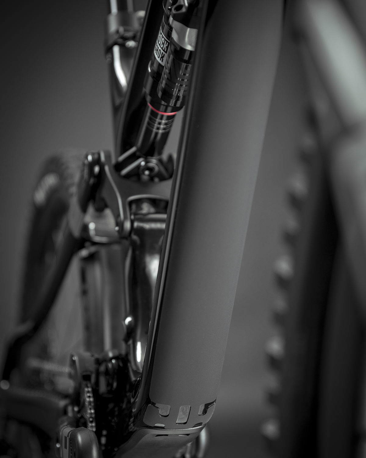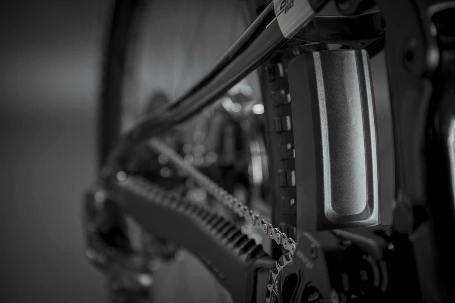 Davantage de protection de série ! Une structure de base moulée en 3D anti-bruit, un film de protection dans des zones clés comme le triangle arrière intérieur et un protecteur de tube diagonal étendu pour protéger le vélo des débris et des accidents de transport. Notre guide-chaîne MERIDA, presque invisible mais super efficace permet de conserver la chaîne sous contrôle.