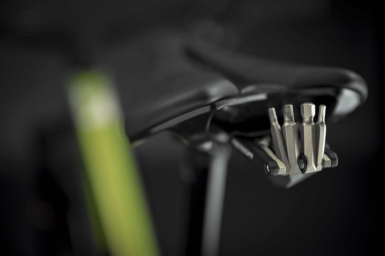 Ajoutez notre outil multifonction MERIDA V-Mount sous la selle et notre clé Allen 4/6 mm sur le levier d'axe traversant arrière amovible et vous serez prêts à partir sans avoir besoin de transporter un sac.