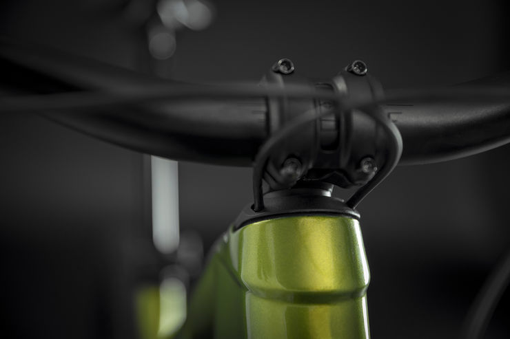 Habituellement, les roues de 29" combinées à une fourche de 170 mm donnent une partie avant très haute. Bien que cela puisse convenir aux cyclistes plus grands, les petits cyclistes ont souvent du mal à trouver la bonne position de conduite. Il existe plusieurs options pour augmenter la hauteur de la partie avant du vélo, comme ajouter des entretoises, une plus grande élévation du cintre ou une potence plus droite. En revanche, il n'y a que très peu, voire même aucune possibilités pour l'abaisser. Dans cet esprit, nous avons créé une partie avant inférieure afin que les petits cyclistes puissent facilement trouver la position basse qu'ils recherchent, tandis que les grands cyclistes peuvent utiliser l'une des nombreuses options disponibles.