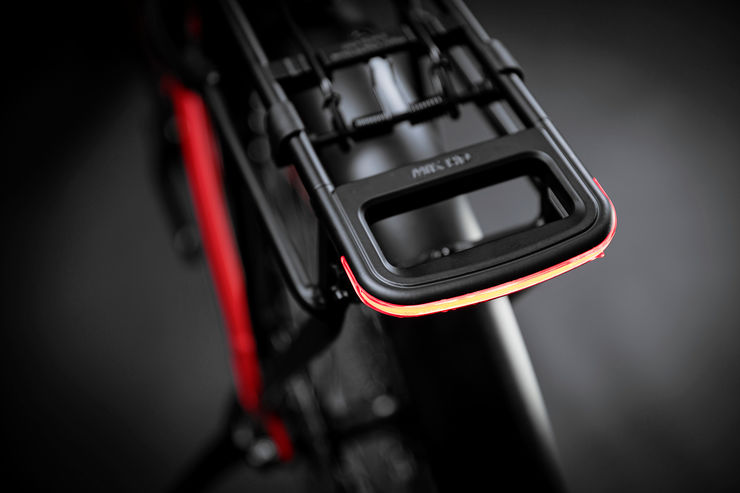 Les modèles de la gamme eSPRESSO CC sont équipés du porte-bagages MIK HD. Homologué pour les sièges enfants, il peut accueillir une charge de 27 kg. L'eSPRESSO CC peut ainsi devenir le vélo familial idéal. Ce porte-bagages dispose également du feu arrière intégré Spanninga pour une visibilité maximale. Tout comme le feu avant, le feu arrière est alimenté par la batterie principale et peut être actionné via l'écran Shimano STePS.