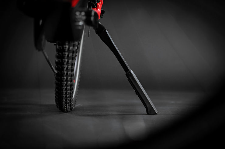 Tous les modèles de la gamme eSPRESSO sont équipés de série d'une béquille latérale dont les points de fixation sont discrètement fixés sous le hauban. La béquille latérale facilite le stationnement et le chargement du vélo.