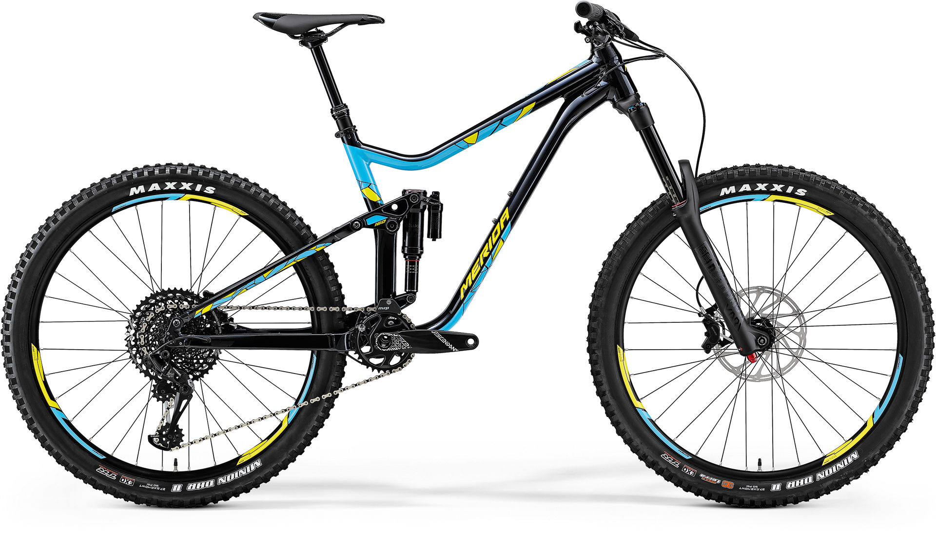 'Merida’s new lineup of suspension bikes are killing it this season, just have a look at the One-Sixty’s smaller brother, the One-Forty. With less travel and huge 2.6″ tyres, it’s a killer all-day trail bike, worth a look if you don’t need all the travel of the One-Sixty.'
