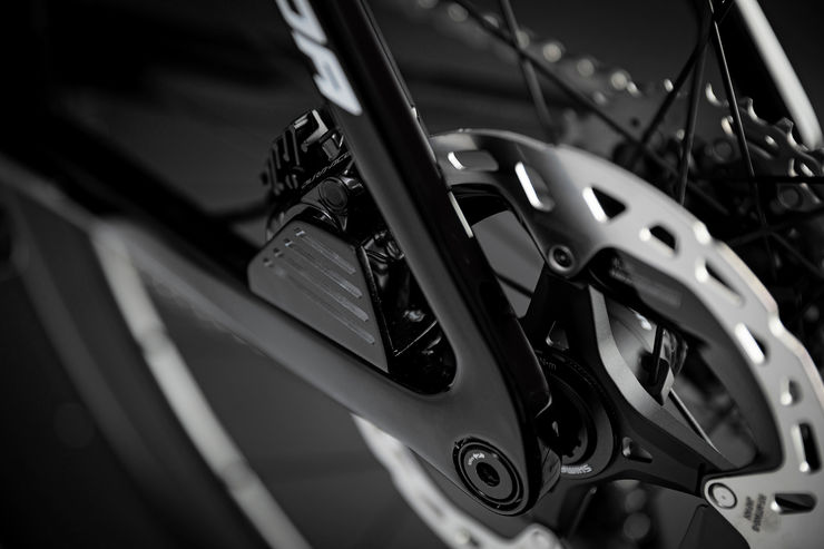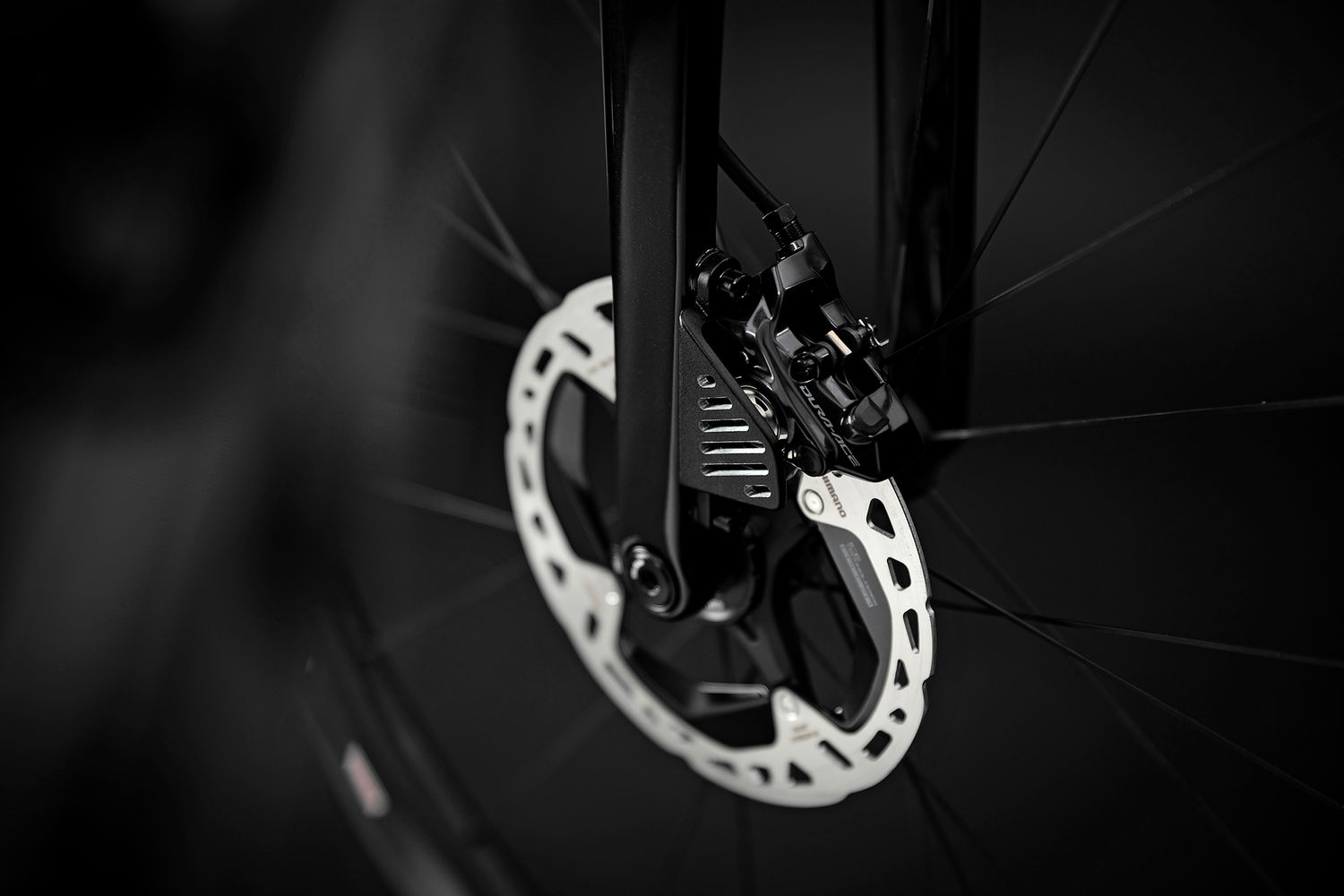 Our latest generation disc coolers, as fitted to the SCULTURA CF5 and CF3 framed models, are further integrated into the frame and fork to minimise aerodynamic drag while reducing the risk of the disc brakes overheating on long and demanding descents. The forged aluminium part under the front and rear disc brake calliper draw heat away through CNC-milled cooling fins, giving 35% less heat build-up and faster temperature reduction for stable braking performance. The latest version features improved access to the bleeding port of the new Shimano 12-speed Flat Mount disc brakes.