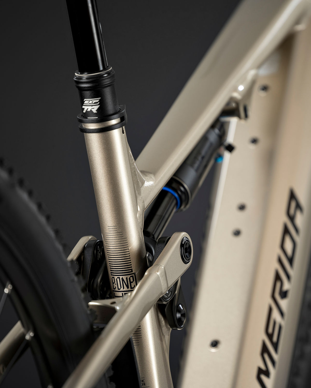 메리다의 e-SUV는 또한 지오메트리에 영향을 주지 않고 뒷바퀴 사이즈를 변경할 수 있는 플립칩(FLIP CHIP)을 갖추고 있습니다. 일반적으로 빠른 롤링과 최대의 안정성을 위해 전체 29인치 세팅을 사용하지만, 조금 더 '활기찬' 오프로드 핸들링이 필요한 경우 더 작은 사이즈인 27.5인치의 뒷바퀴를 장착하여 자전거를 더욱 생동감 있게 만들 수 있습니다.