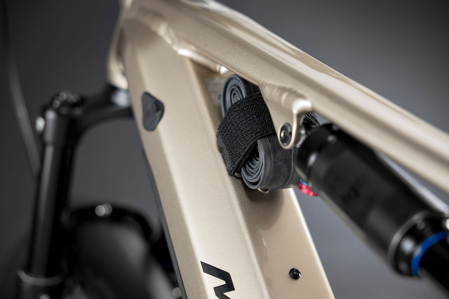 자전거에 추가 도구 및 스페어 파츠를 휴대할 수 있도록 모든 e원-포티 프레임에는 트레일 마운트가 적용되었습니다. 탑 튜브 하단부에 추가 장착 지점을 확인해 보세요.