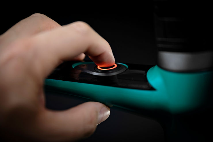 By zachować maksymalnie czysty wygląd kokpitu, umieściliśmy włącznik/wyłącznik iWOC na górnej rurze roweru. Dzięki temu jest on łatwo dostępny w każdej sytuacji na trasie. To nie tylko włącznik/wyłącznik, iWOC pozwala też zmieniać przyciskiem poziomy wsparcia. Różne kolory podświetlanego okręgu znajdującego się na iWOC wskazują na obecnie używany tryb. Dzięki połączeniu różnych funkcji w jednym urządzeniu rower ma czysty wygląd, zwłaszcza w okolicy kokpitu. Zapewnia to również cichą jazdę i ułatwia montaż wyprawowych toreb.