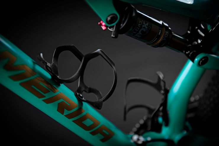 Um dos desejos da lenda do MTB José Hermida era que dois bidons de água pudessem ser colocados no triângulo frontal. Para o conseguirmos, utilizámos um adaptador único na parte inferior do tubo do selim. A vantagem é que a profundidade de inserção do espigão de selim telescópico pode ser maior, o que dá ao cliente uma escolha mais ampla ao escolher a rota preferida para o seu espigão de selim telescópico
