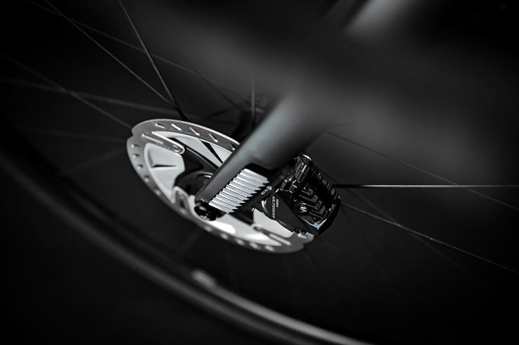 The 2nd generation disc coolers are further integrated into the frame and fork for a slicker appearance while reducing the risk of the disc brakes overheating on long and demanding descents. The forged aluminium part under the front and rear disc brake caliper draw heat away through CNC-milled cooling fins, giving 35% less heat build-up and faster temperature reduction for stable braking performance.