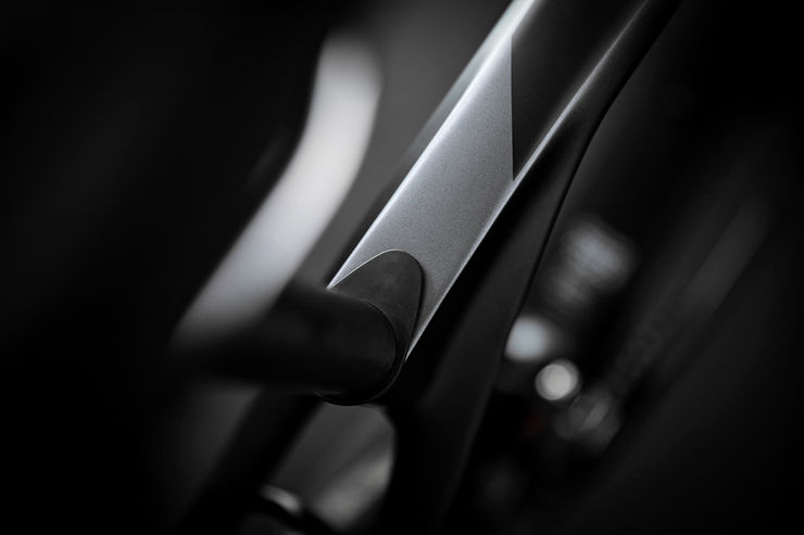All control cables like gear and brake cable enter the frame through a specifically shaped headset, making the cables almost invisible while also keeping them out of harm's way.
