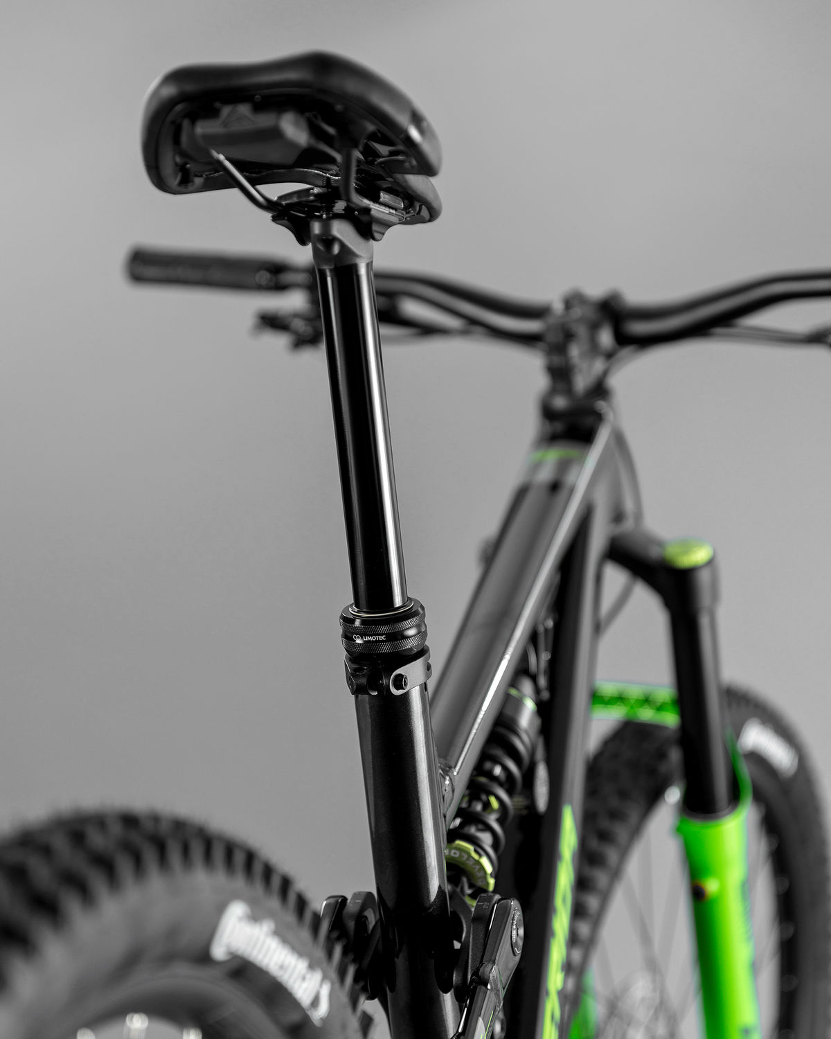 Our frame design maximises clearance, so we’ve maximised dropper post travel too. Higher end bikes get our 30-230 mm travel adjustable TEAM TR II post, but even on more affordable options we’ve used our EXPERT TR II post to maximise the seatpost travel across all sizes.