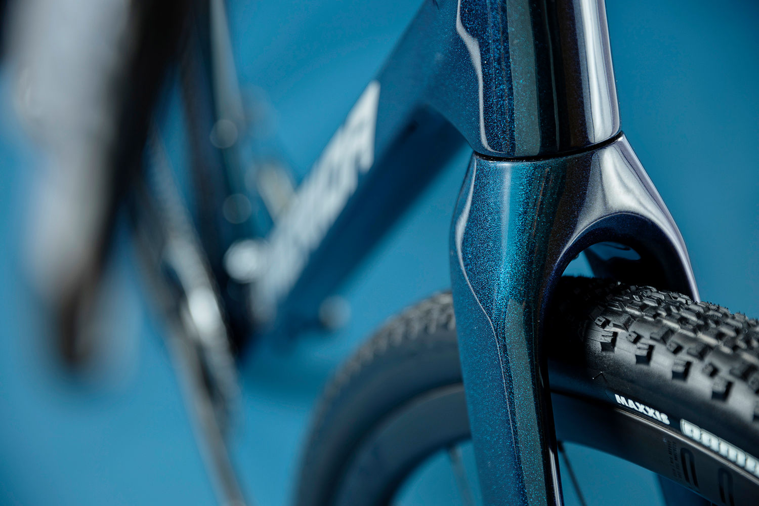 - 頭管縮短、前叉變長,增加了輪間隙,甚至可搭配礫石車專用的避震前叉