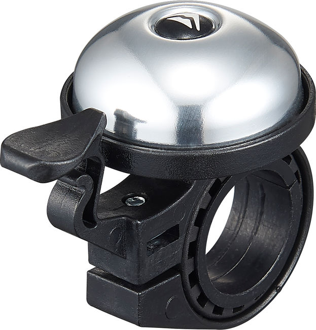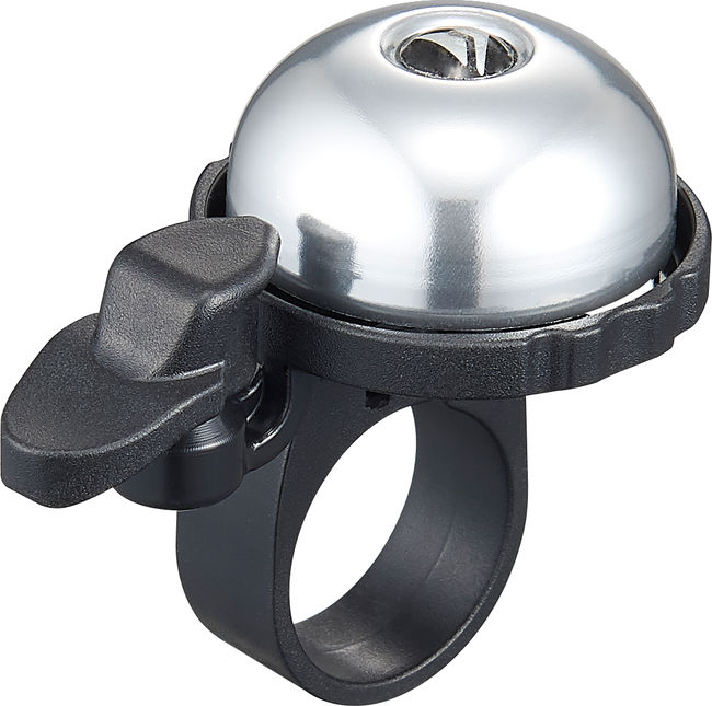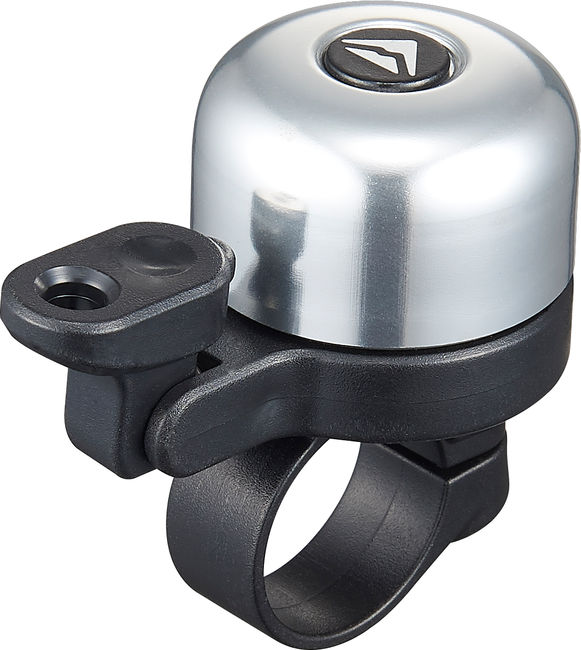 Classic miniature handlebar bell made from aluminium and plastic. The spring-loaded hammer can be adjusted for perfect reach. Fast and simple installation. Fits for bicycles handlebars with an outer diameter between 22 - 22.8 mm, the bike bell can be easily installed on the right or left hand side. Available in silver or black.