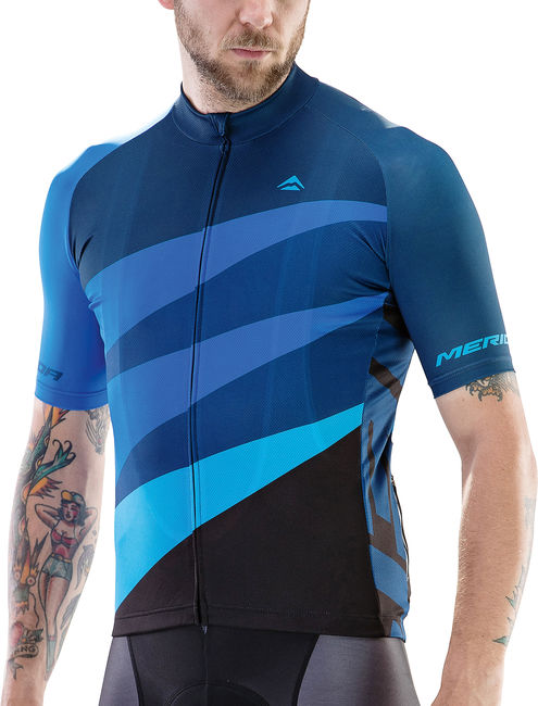 The MERIDA JERSEY STRIPE SPORT CUT is the perfect jersey for riding on and off-road. Constructed from a technical polyester fabric, the STRIPE is our take on the classic sport cycling jersey. It has 4 pockets on the back (including a zip-up, waterproof pocket) for quick access to tools, snacks and spare layers. Mesh inserts in the underarms and a full length, hidden zip (with zipper garage) help to manage your temperature perfectly.