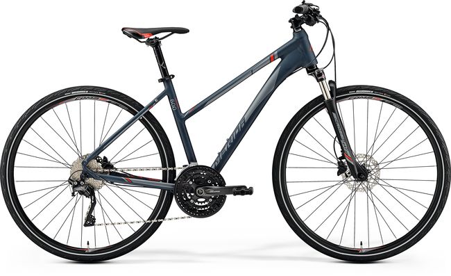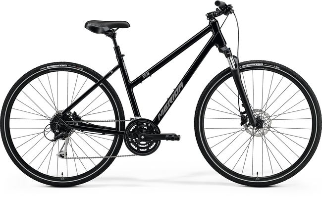 The CROSSWAY family has been the MERIDA range's backbone since its introduction. They are used worldwide and are proven as a reliable, versatile and fun-packed way of getting around. Designed to provide a comfortable place to take in the surroundings thanks to an upright riding position and comfort focused equipment such as suspension fork and adjustable stems on selective models, they offer the perfect blend of comfort, enjoyment and all-round functionality. They are suitable for fitness training, commuting and leisurely rides through forests and on trails. Made from high-quality, lightweight aluminium with the ability to mount mudguards, racks and kickstands, the CROSSWAY range is the perfect choice for everyday riding. The fitted 700c wheels cover ground quickly, while the extra volume of the 40 mm wide tyres offers puncture protection, grip and comfort. All CROSSWAY models are available as a low step-through frame, making mounting and dismounting straightforward.