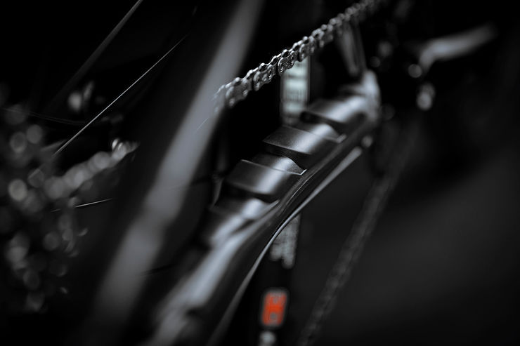 降低單車的噪音,是一項重要的課題,且要朝著不因長期使用後而又變得吵雜,來規劃設計。電池蓋不僅保護了電池,其實也幫助降低了車噪;而在鍊條側的下叉保護套,也起到相同作用,加大尺寸、加長保護範圍,幾乎將下叉完整包覆,鍊條跳動、碎石子彈跳撞擊車架的噪音,可以大幅降低,讓您盡情享受與大自然的對話。
