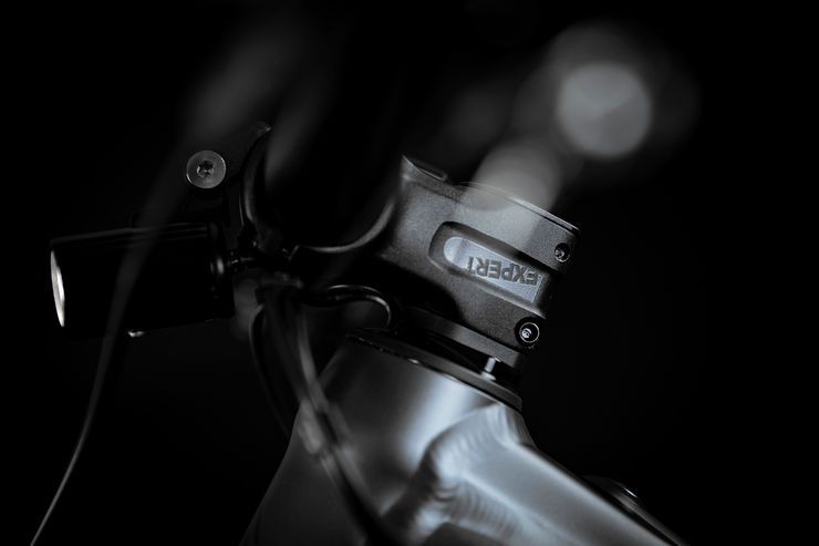 與行車電腦、電池連通的周邊電子裝置,其電源線與控制線,能夠直接進入EXPERT eTR系列的把手與龍頭,在車架內與系統連接,達到非常簡潔俐落的外觀呈現。eTRII龍頭前蓋整合設計,則可以直接固定Lezyne前燈。如同電動車上的所有其他配件一樣,eTR龍頭與把手,也完整通過140kg的系統重量嚴苛測試。