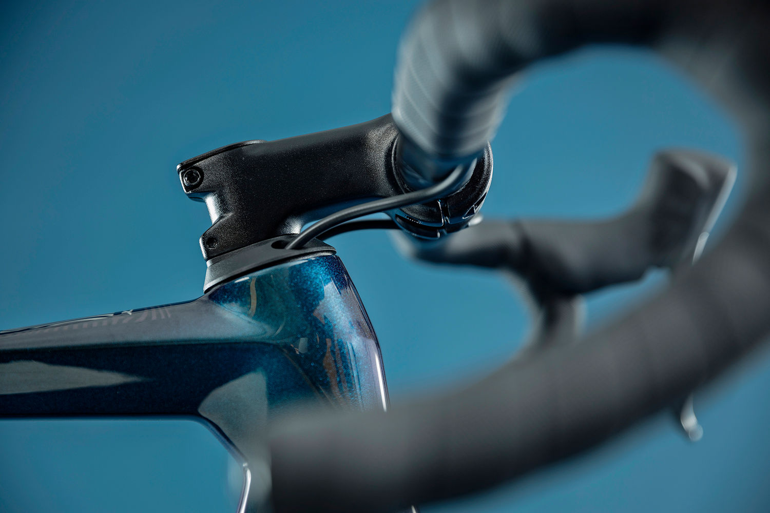 - 頭管縮短、前叉變長,增加了輪間隙,甚至可搭配礫石車專用的避震前叉